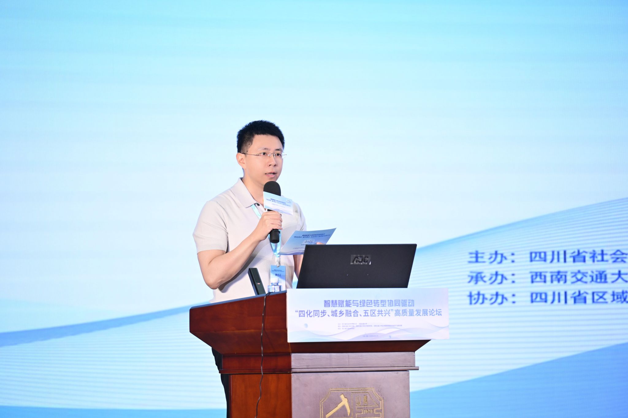 承办的“四化同步、城乡融合、五区共兴”高质量发展论坛在西南交通大学九里校区国际会议厅举行。本次论坛以“智慧赋能与绿色转型协同驱动”为主题。来自国家发改委能源研究所、省委政研室、省委党校、省经信厅、省农业农村厅、省社科院等部门和省内外科研院所、高校、各市(州)社科联和相关行业学会的领导、嘉宾、代表近百人参加。论坛由西南交通大学党委副书记高平平主持。